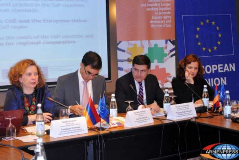 ՀՀ արտաքին գործերի նախարարության Եվրոպայի վարչության պետ Պարույր Հովհաննիսյանն ընդգծեց, որ երկու շաբաթ առաջ ԵԽ նախարարների կոմիտեն հաստատել է Հայաստանի համար նախատեսված 2015-2018 թվականի գործողությունների ծրագիրը, որը մշակվել է ՀՀ ԱԳՆ-ի, Հայաստանի շահագրգիռ գերատեսչությունների, ԵԽ քարտուղարության և ԵՄ գրասենյակի ակտիվ համագործակցության շնորհիվ: