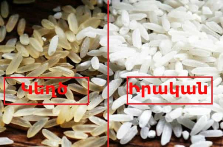 Բրինձն ամենահաճախ կեղծվող ու ամենավտանգավոր մթերքն է։ Դրա հետ պլաստիկ նյութեր են խառնում, որոնք վտանգավոր են առողջության համար։ Ստուգելու համար բրինձը լցրեք ջրի մեջ։ Կեղծ բրինձը չի սուզվում ու մնում է ջրի մակերևույթին։