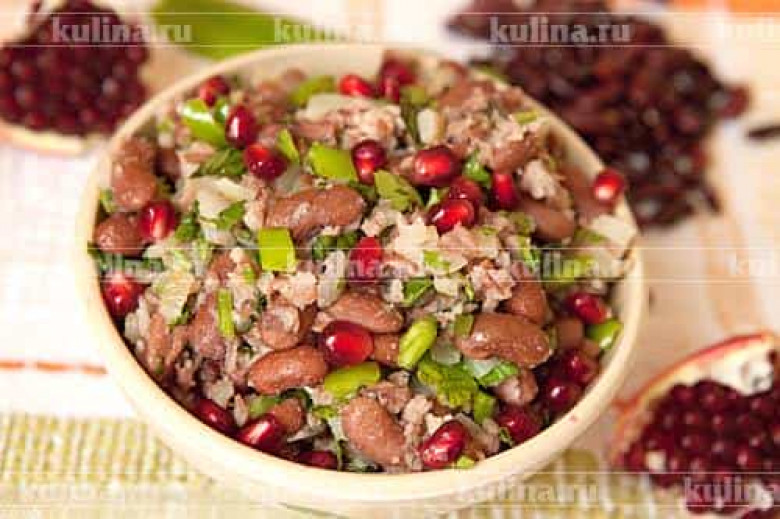 Ավելացնել աղ ու տապակած սոխ, նուռ: