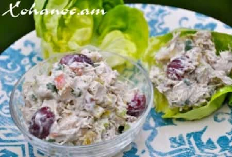 ԼԱՅՖԲաղադրամասեր տավարի միս – 300 գ, նուռ – 1 հատ, սխտոր – 1-2 ատամիկ, ընկույզի միջուկ – 60 գ, թթվասեր – 2 ճ. գդ., մայոնեզ – 2 ճ. գդ., աղ, սև պղպեղ Պատրաստման եղանակը Տավարի միսը խաշել, մանր կտրատել կամ թել-թել անել, ավելի գեղեցիկ կստացվի: Նուռը մաքրել, հատիկներն առանձնացնել, մի քանի հատիկ թողնել զարդարելու համար: Սխտորը մաքրել, ճզմել: Ընկույզի միջուկը մանրացնել դանակով, շատ մանր փշրելու կարիք չկա: Թթվասերը, մայոնեզը, սխտորը խառնել, աղ, պղպեղ անել: Սոուսը լցնել մսի վրա, ավելացնել նռան հատիկները, ընկույզը և խառնել: Զարդարել և մատուցել տոնական ընթրիքին: