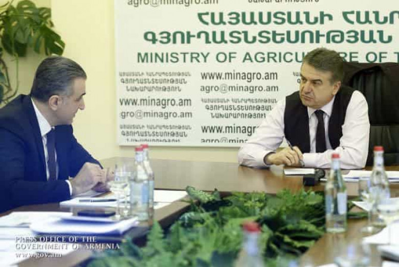 Կարեն Կարապետյանին են ներկայացվել գյուղատնտեսական ապահովագրության համակարգի ներդրման, ինտենսիվ այգիների զարգացման, կարկտապաշտպան ցանցերի մատչելի պայմաններով ներկրման, լիզինգային պայմաններով գյուղտեխնիկայի տրամադրման ծրագրերի իրականացման, գյուղատնտեսական հողատարածքներում ոռոգման արդյունավետ՝ կաթիլային համակարգերի ներդրման ուղղությամբ իրականացվող աշխատանքները: Նախատեսվում է նաև գյուղատնտեսական հումքի մթերման համար մատչելի վարկերի տրամադրման պիլոտային ծրագիր, ինչի արդյունքում մթերող կազմակերպությունների և գյուղացիական նտեսությունների միջև կկազմվի երաշխավորված պայմանագիր, իսկ գյուղացին մթերման գումարը կստանա մթերման պահին: