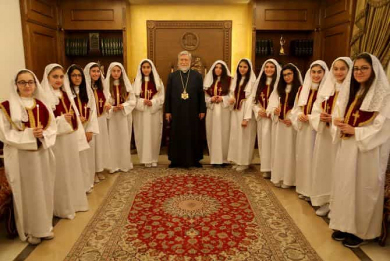 Եկեղեցական արարողութեան աւարտին, Մայր Տաճարի փոխ-լուսարարապետ՝ Հոգշ. Տ. Լեւոն Աբղ. Եղիայեանի առաջնորդութեամբ, «տասը կոյսերը» եւ իրենց ծնողները բարձրացան Վեհարան, ուր Ն.Ս.Օ.Տ.Տ. Արամ Ա. Վեհափառ Հայրապետը ընդունեց եւ օրհնեց զիրենք։ Նորին Սրբութիւնը խօսելով օրուան խորհուրդին մասին իր հայրական թելադրութիւնները կատարեց։ Ան նաեւ յիշեցուց մեր եկեղեցւոյ, ինչպէս նաեւ աւանդութիւններուն, կառչած մնալու կարեւորութիւնը։ Աւարտին, Վեհափառ Հայրապետը իւրաքանչիւր ուսանողուհիի օրհնուած խաչ մը նուիրեց»։