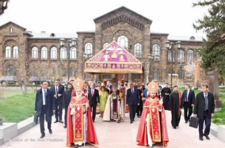Արցախի Նախագահը Մայր Աթոռում մասնակցել է Սուրբ Հարության տոնի Հայրապետական սուրբ պատարագին