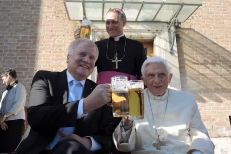Հրատարակության հրապարակած լուսանկարներում Բենեդիկ տոս XVI-ը պատկերված Է գարեջրի գավաթը ձեռքին հյուրերի ընկերակցությամբ, որոնց թվում Է նրա ավագ եղբայր մոնսենիոր Գեորգ Ռատցինգերը, որը նույնպես գարեջուր Է ըմպում: