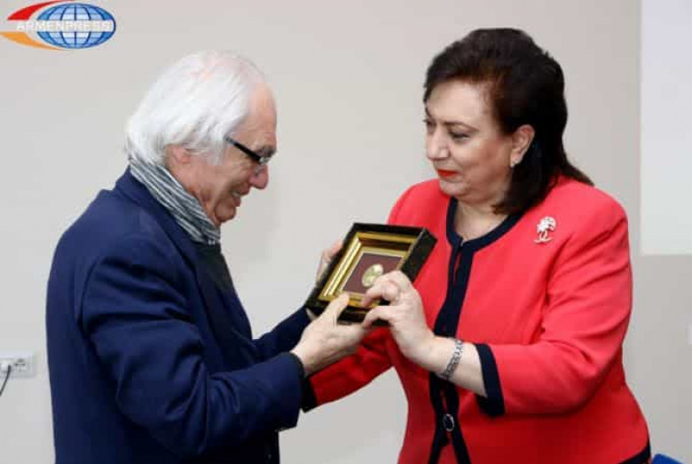 Պարգևատրման արարողությունը տեղի ունեցավ նախարարությունում անցկացված «Հայաստանում կայացած սփյուռքահայ արվեստագետների հետ հանդիպումներ» ծրագրի շրջանակում։