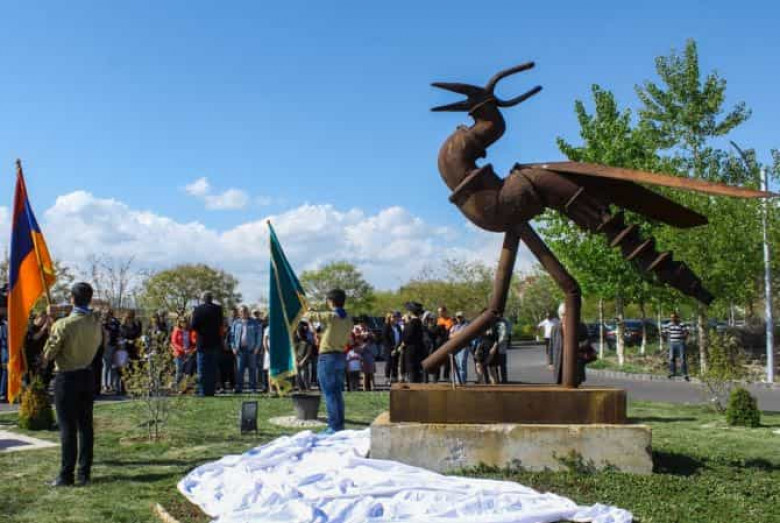 Վահագնի թաղամասում բացվեց Հակոբ Հակոբյանի մանրաքանդակի օրինակով ստեղծված «Փյունիկ» քանդակը