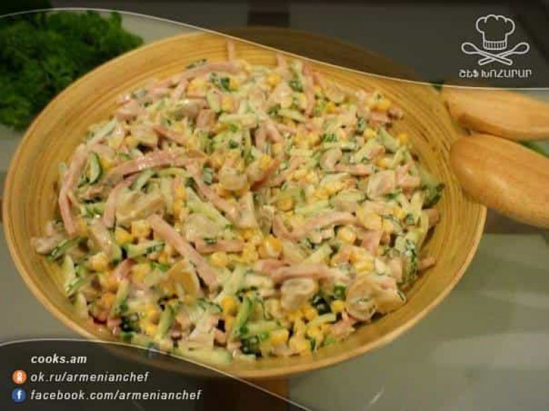 Իտալական աղցան վարունգով և եգիպտացորենով. Արագ, համեղ և շատ հեշտ