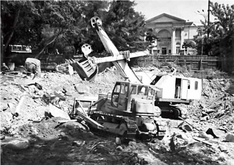 Կառուցվում է Երևանի Բաղրամյան պողոտան: 1957 թվական: Լուսանկարիչ՝ Ա. Ագապով: