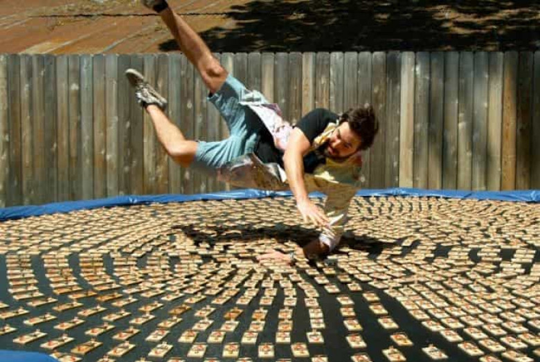 Ամերիկացին նետվել Է հազար լարված մկնաթակարդներով ցատկացանցի վրա