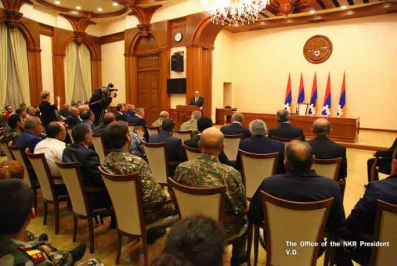 Ինչպես «Արմենպրես»-ին տեղեկացրին Արցախի Հանրապետության Նախագահի աշխատակազմի տեղեկատվության գլխավոր վարչությունից, քննարկվել են ղարաբաղա-ադրբեջանական սահմանում տիրող իրավիճակին, բանակ-հասարակություն կապերին եւ մատաղ սերնդի դաստիարակությանը վերաբերող մի շարք հարցեր: