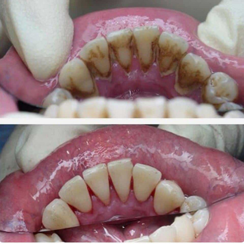 Խառնեք աղն ու սոդան, ատամի խոզանակը թրջեք տաք ջրով: Խառնուրդը լցրեք ատամի խոզանակի վրա և մաքրեք ատամները: Հետո թքեք: Սա կրկնեք 2 րոպե: