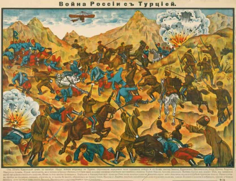 ԲԼՈԳՊատմական զուգահեռներ՝ 100 տարի անց... Առաջին աշխարհամարտի սկզբին տպագրված ռուսական քարոզչական պաստառ՝ «Ռուսաստանի պատերազմը Թուրքիայի հետ» (1914 թվականի հոկտեմբեր): Պատկերված է, թե ինչպես է ռուսական ռազմական ինքնաթիռը վերևից ռմբահարում թուրքերին, իսկ ներքևում՝ ընթանում է կատաղի մարտ:
