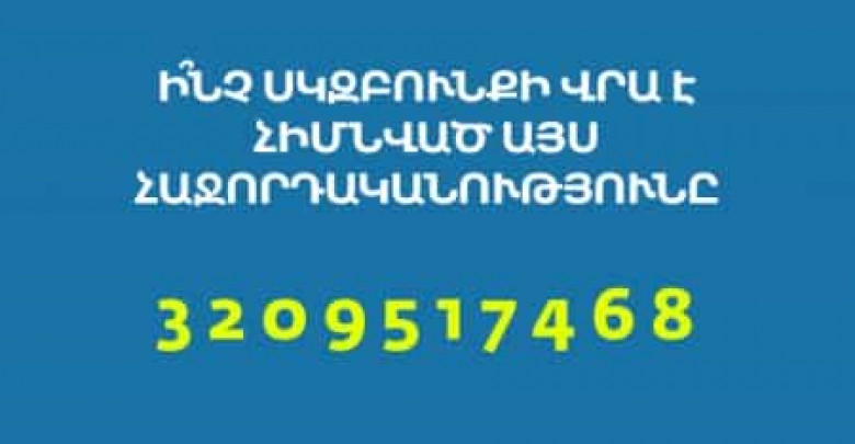 Թվերը դասավորված են ըսդ դրանց անվանումների այբբենական կարգի՝ երեք, երկու, զրո, ինը, հինգ, մեկ, յոթ, չորս, վեց, ութ: