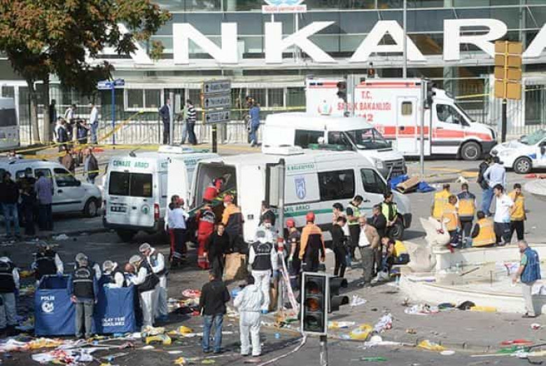 ՄԻՋԱԶԳԱՅԻՆԱնկարայում հոկտեմբերի 10-ի առավոտյան երկաթուղային կայարանի մոտ թուրք-քրդական բախումներին վերջ դնելու խաղաղության կոչերով հանրահավաքի ժամանակ տեղի ունեցած երկու հզոր պայթյունների հետեւանքով զոհվածների տարբեր թվաքանակներ են հաղորդվում: