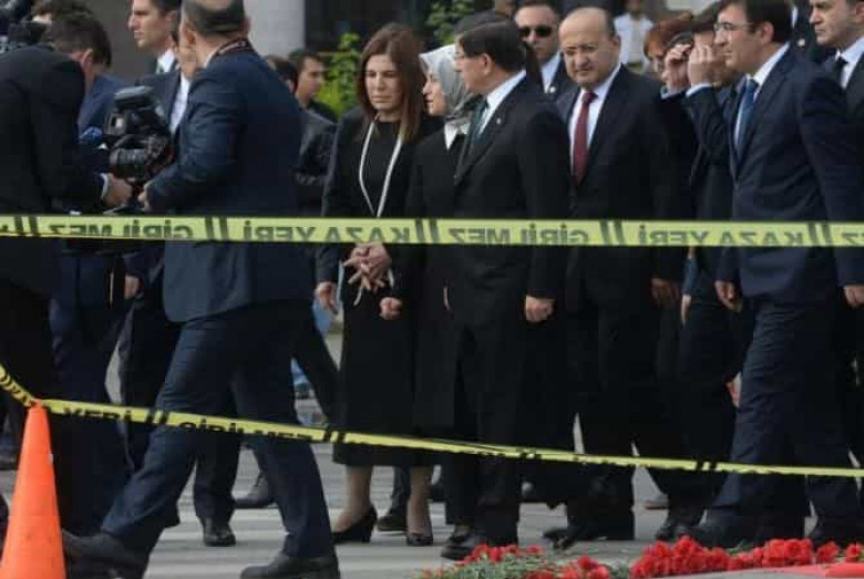 ՄԻՋԱԶԳԱՅԻՆԹուրքիայի վարչապետ Ահմեդ Դավութօղլուն կնոջ՝ Սարե Դավութօղլուի հետ այցելել է Անկարայի այն հրապարակ, որտեղ հոկտեմբերի 10-ին տեղի էր ունեցել ահաբեկչությունը: Վկայակոչելով թուրքական «Հուրիեթ» պարÕ �երականը, վարչապետը ծաղիկներ է թողել հատակին և աղոթել զոհերի համար:
