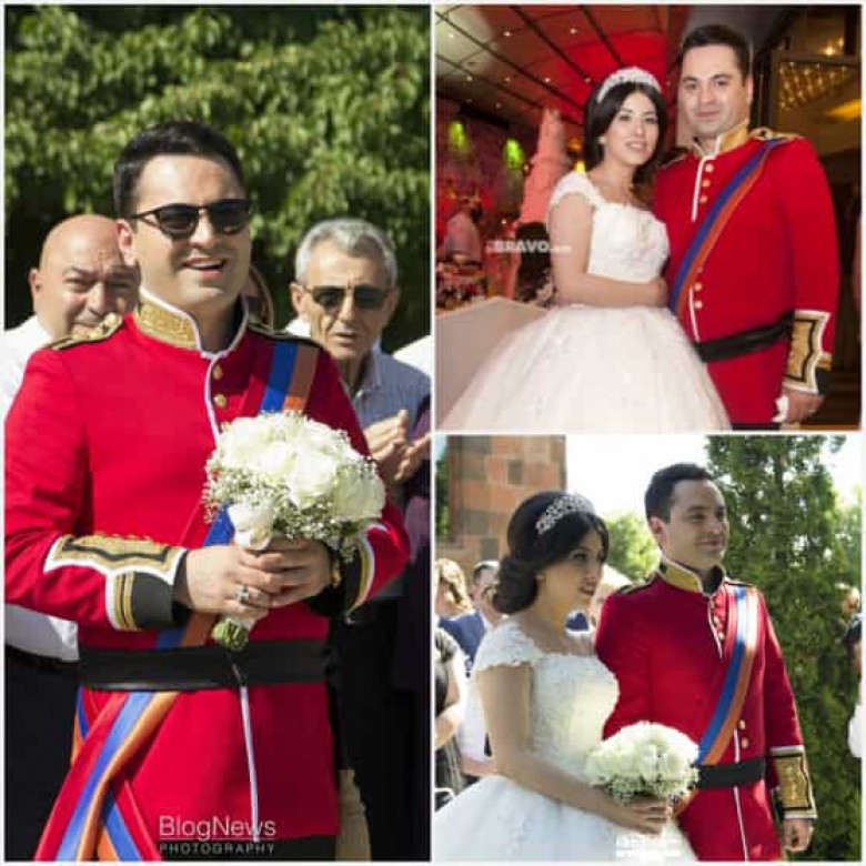 «Իրականում Մհերը ուզում էր իր հարսանիքին հետաքրքիր եւ ավելի շատ հանդիսավոր տեսք ունենար, որով կտարբերվեր մյուսներից: Բացի այս, մի քանի տարի առաջ, երբ Մհերն Արցախում երգեց «Հայաստան» երգը, նա կրկին եռագույնը հիշեցնող հագուստով ներկայացավ, եւ ուզում էր, որպեսզի հարսանիքին եւս եռագույնի էլեմենտ կրի: Արդյունքում, «Անահիտ Սիմոնյան» նորաձեւության տան հետ աշխատելով, եկան այն եզրակացության, որ կարմիր հանդերձանքը լավագույնս կսազի եռագույն ժապավենի հետ: Հետո կոստյումին ավելացան ոսկեգույն էլեմենտները, որը հիշեցնում է տոնական զինվորական համազգեստ: Այո, որոշ նմանություններ կան արքայազն Ուիլիամի հանդերձանքի հետ, սակայն դա եւս միանշանակ ասել չի կարելի, որովեհետեւ արքայազնի կոստյումն էլ հիշեցնում էր «Щелкунчик» մուլտֆիլմի հերոսի հանդերձանքին: Այսինքն, համեմատություններ տանելով, շատերի հագուստներում կարելի է ընդհանրություններ գտնել»,- նշեց պրոդյուսերը: