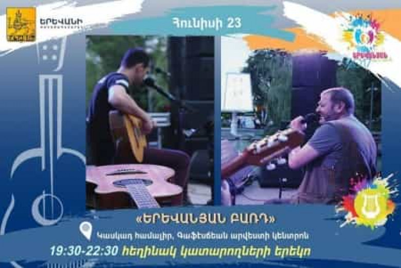 Հունիսի 23-ին, ժամը 19:30-ին սիրով հրավիրում ենք Կասկադի հարակից տարածք մասնակցելու «Երևանյան բառդ» հեղինակ կատարողների բացօթյա համերգային երեկոյին: