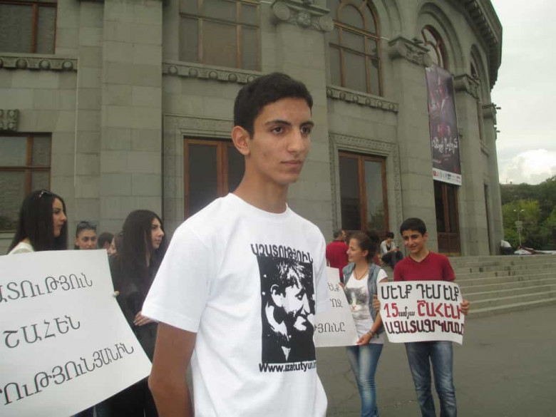 Պաստառիս վրա գրված է եղել "Freedom for Shant Harutyunyan and all political prisoners in Armenia" ( Ազատություն Շանթ Հարությունյանին և Հայաստանի բոլոր քաղբանտարկյալներին):