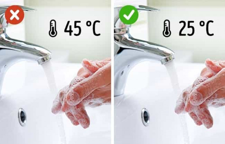 լվացեք ձեռքերը գոլ, այլ ոչ տաք ջրով:
