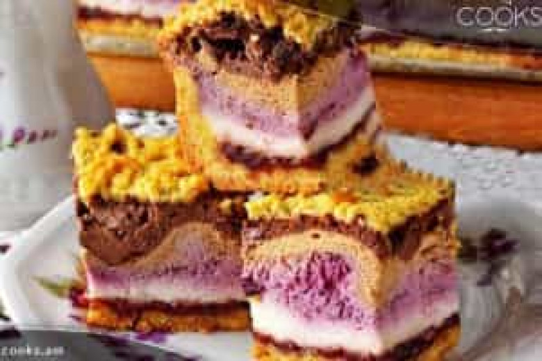 - Այնուհետև սառցախցիկից հանում ենք փոքր խմնորը և քերում մեր տորթի վրա: