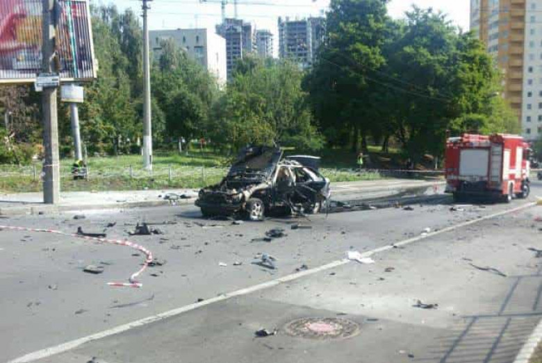 Ինչ վերաբերում Է ռումբին, ապա դրա տեսակն ու հզորությունն առայժմ որոշված չԷ: Հունիսի 27-ի առավոտյան Կիեւի Սոլոմենսկի շրջանում պայթել Է Mercedes ավտոմեքենա: Վարորդը զոհվել Է, եւս մեկ մարդ՝ տարեց մի տղամարդ, տուժել Է: «Նա կա՛մ գտնվում Էր մեքենայի կողքին եւ թեթեւ վնասվածք Է ստացել, կա՛մ պարզապես հոգեբանական ինչ-որ ոչ մեծ վնասվածք Է ստացել: Ամեն դեպքում նրա կյանքին վտանգ չի սպառնում»,-պատմել Է Արտյոմ Շեւչենկոն, որի խոսքը մեջբերել Է ՈւՆՆ-ն:
