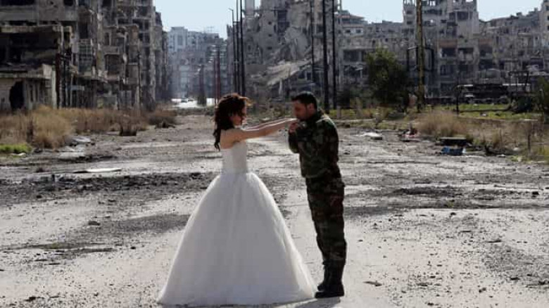 ԼԱՅՖՌմբակոծությունների հետևանքով ավերակների վերածված սիրիական Հոմս քաղաքում նորապսականեը որոշել են հարսանեկան ֆոտոսեսիա կազմակերպել: Դամասկոսից 162 կմ հեռավորության վրա գտնվող, մեծությամբ երրորդ Հոմս քաղաքում պատերազմից առաջ բնակվում էր 600 հազար մարդ: Սովորական կյանքն այստեղ շարունակվում է, որքանով դա հնարավոր է: