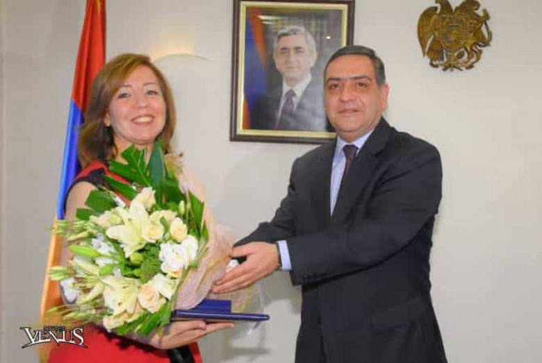ՄԻՋԱԶԳԱՅԻՆՀալեպում ՀՀ գլխավոր հյուպատոսությունում հուլիսի 5-ին` ՀՀ Սահմանադրությանը օրը, տեղի է ունեցել պարգևատրման արարողություն: Ինչպես «Արմենպրես»-ին տեղեկացրին Հալեպում ՀՀ գլխավոր հյուպատոսությունից, Հայաստանի Հանրապետության Անկախության 25-ամյակի առթիվ, Հայրենիք-սփյուռք կապերի ամրապնդման և զարգացման գործում ներդրած ավանդի համար «Գանձասար» շաբաթաթերթի գլխավոր խմբագիր Զարմինե Չիլաբոշյան-Պողիկյանը պարգևատրվել է Մովսես Խորենացու մեդալով: ՀՀ Նախագահ Սերժ #Սարգսյանի անունից պարգևը հանձնել է Հալեպում ՀՀ գլխավոր հյուպատոս Տիգրան Գևորգյանը: