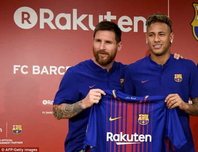 ՍՊՈՐՏ«Բարսելոնայի» հարձակվողներ Լիոնել Մեսին ու Նեյմարը Տոկիոյում ներկայացրել են թիմի նոր համազգեստը, որի վրա կատալոնական ակումբի նոր հովանավոր ճապոնական Rakuten ընկերության տարբերանշանն է, փոխանցում է Daily Mail-ը: