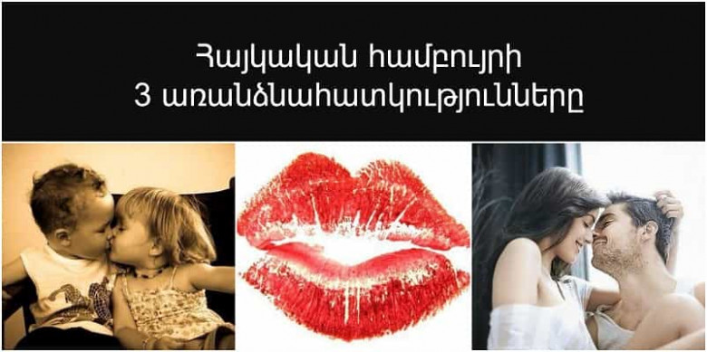 ԼԱՅՖԿա ֆրանսիական համբույր, ռուսական, լեզվով եւ այլն… Երբեւէ մտածել եք` իսկ ինչով են տարբերվում հայկականը: Պարզվում է, որ տարբերություն կա և ահա այն երեք առանձնահատկությունները, որը համբուրվելիս հատուկ է հայերին: