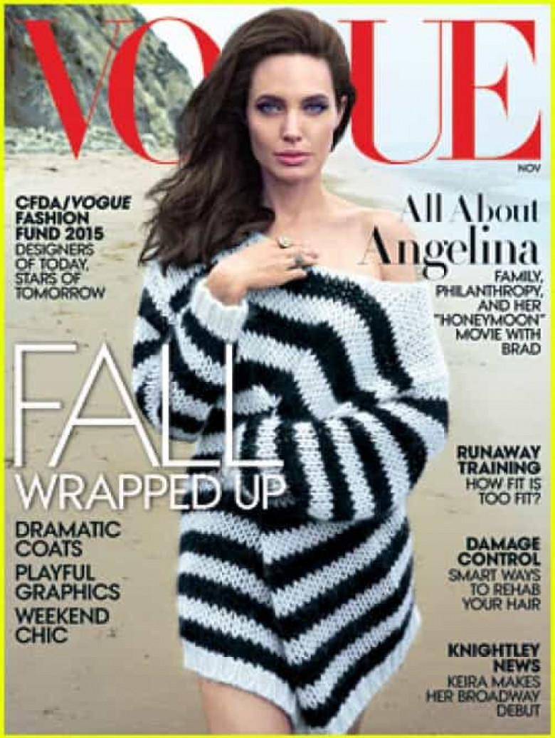 Անջելինա Ջոլին հայտնվելու է Vogue-ի նոյեմբերյան համարի շապիկին։ 40-ամյա դերասանուհին լուսանկարվել է իր երեխաների՝ 14-ամյա Մեդոքսի, 11-ամյա Փաքսի, 10-ամյա Զախարայի, 9-ամյա Շիլոյի, 7-ամյա երկվորյակներ Նոքսի եւ Վիվյենի, ինչպես նաեւ ամուսնու՝ Բրեդ Փիթի հետ։
