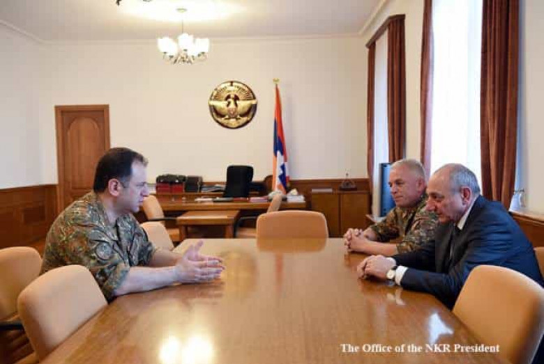 Հանդիպմանը, որին մասնակցում էր ԼՂՀ պաշտպանության նախարար Լեւոն Մնացականյանը, քննարկվել են բանակաշինությանը եւ այդ ոլորտում հայկական երկու հանրապետությունների համագործակցությանը վերաբերող մի շարք հարցեր: