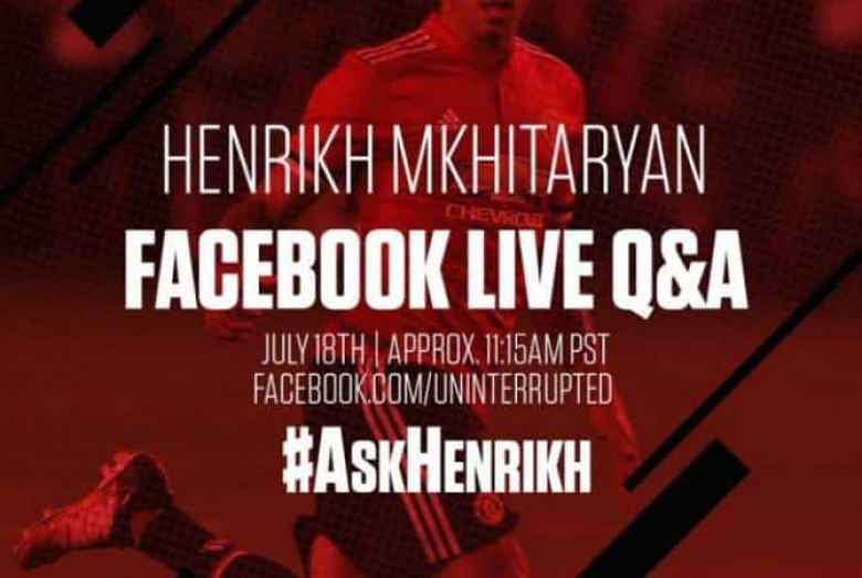 ՍՊՈՐՏՀայաստանի ազգային հավաքականի և անգլիական «Մանչեսթեր Յունայթեդ»-ի կիսապաշտպան Հենրիխ Մխիթարյանը կրկին ֆեյսբուքյան ասուլիս կտա: Ինչպես հաղորդում է «Արմենպրես»-ը, այն կմեկնարկի հուլիսի 18-ին՝ Երևանի ժամանակով 22։15-ին։ Հարցերը ֆուտբոլասերները կարող են ուղղել UNINTERRUPTED-ի պաշտոնական ֆեյսբուքյան էջում:։