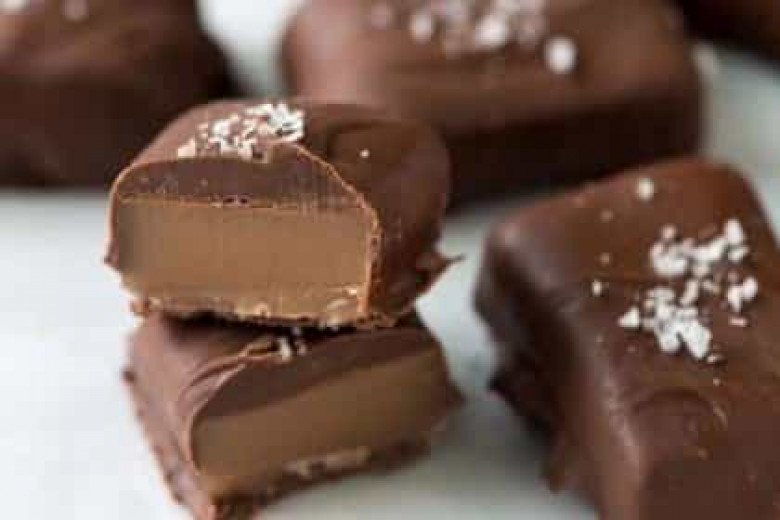 Կտրատում ենք պատրաստի կարամելը և ընկղմում հալեցրած շոկոլադի մեջ պատառաքաղի օգնությամբ: Պատրաստի կոնֆետները դնում ենք պերգամենտային թղթի վրա և վրան շաղ տալիս ծովի աղը: