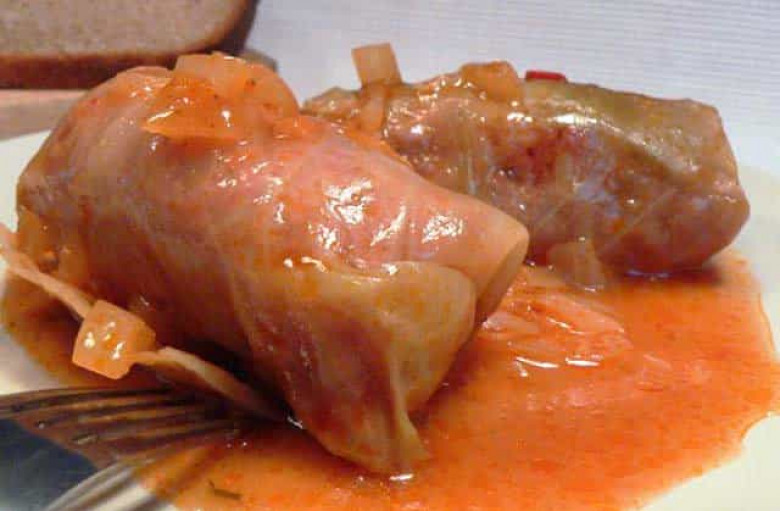 Ստացված զանգվածը ավելացնել կարտոֆիլին և խառնել: Փաթաթել խաշած կաղամբի տերևներով, վրան լցնել տոմատաջուր այնքան, որ ծածկի դոլմաները, և եփել: