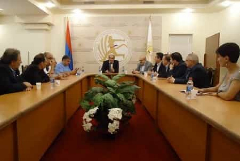 ՍՊՈՐՏ: ՀՀ սպորտի և երիտասարդության հարցերի նախարար Հրաչյա Ռոստոմյանն ընդունել է Հայ մարմնակրթական ընդհանուր միության (Հ.Մ.Ը.Մ) ներկայացուցիչներին՝ Հ.Մ.Ը.Մ կենտրոնական վարչության ատենապետ Գառնիկ Մկրտչյանի ղեկավարությամբ:
