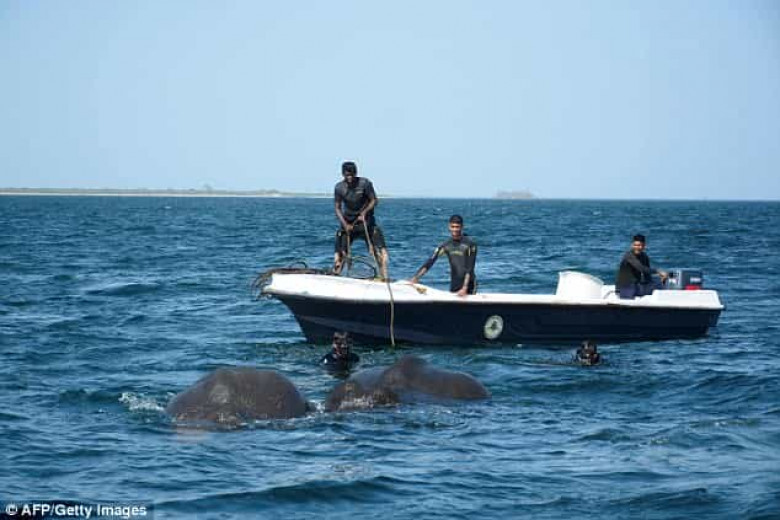 ՖՈՏՈThe Daily Mail պարբերականի հաղորդմամաբ, օրերս Շրի Լանկայի ռազմածովային ուժերի ներկայացուցիչները իրականացրել են 12 ժամանոց փրկարարական բավականին բարդ օպերացիա, որի շրջանակում խեղդվելուց են փրկել բաց ծով քշված 2 փղի: