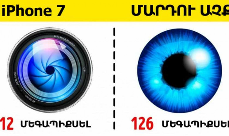 Իհարկե տեսախցիկի և աչքի համեմատությունը ադյքան էլ ճիշտ չէ, սակայն իրականում մեր աչքերը բիբի կենտրոնում հավասար են 126 մեգապիքսել հզորությամբ տեսախցիկի։