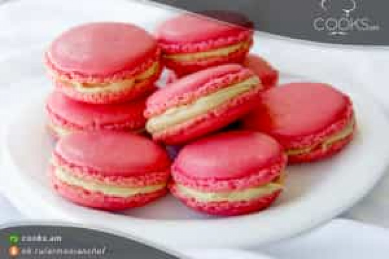 - Ձվի դեղնուցն ու սպիտակուցն առանձնացնում ենք: Վերցնում ենք նուշի ալյուրը կամ պատրաստում ենք ինքնուրույն: Նուշի վրա եռման ջուր ենք լցնում, թողնում 10 րոպե, հետո դատարկում ենք, նորից եռման ջուր լցնում ու թողնում մի քանի րոպե: Այնուհետև ջուրը դատարկում ենք և նուշի կեղևները մաքրում և չորացում տաք թավայի մեջ կամ 50 աստիճան տաքացրած ջեռոցում (10 րոպե): Այս ամենի հետո նուշը հովացնում ենք ու աղում` ընթացքում շաքարի փոշի ավելացնելով (5 վայրկյան ընդմիջումներով): Ստացվում է նուշի ալյուր, որը 2-3 անգամ մաղում ենք: