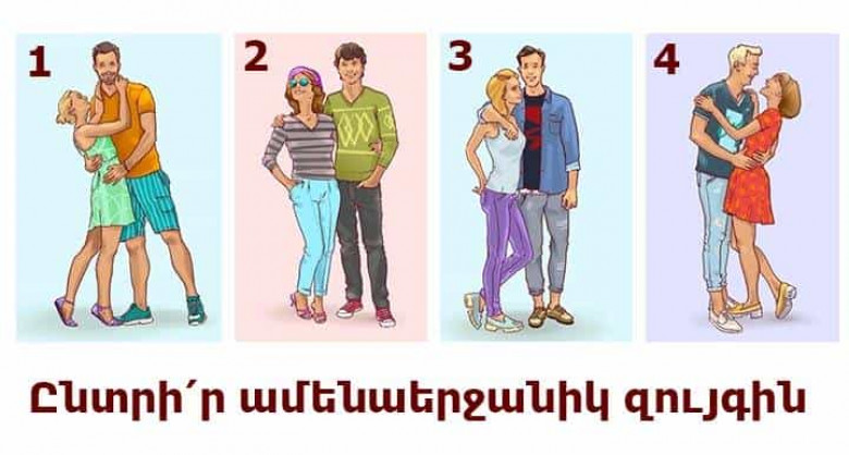Ընտրեք ամենաերջանիկ զույգին, և մենք կարևոր մանրամասներ կպատմենք ձեր հարաբերությունների մասին