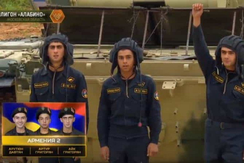 «Արմենպրես»-ի հաղորդմամբ` ՀՀ Զինված ուժերի 2-րդ անձնակազմը ներկայացրել են 19-ամյա ժամկետային զինծառայողներ` տանկի հրամանատար կրտսեր սերժանտ Հարություն Դավթյանը, նշանառու օպերատոր շարքային Արթուր Գրիգորյան, մեխանիկ -վարորդ շարքային Հայկ Գրիգորյան: Հայ տանկիստներն իրենց ուժերը չափել են Հնդկաստանի (1-ին տեղ` 21:43), Վենեսուելայի (2-րդ տեղ` 29:02) և Նիկարագուայի (4-րդ տեղ` 45:39) հետ: