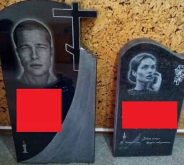 Գերեզմանաքարեր Ջոլիի և Բրեդ Փիթի լուսանկարներով. կապշեք, երբ տեսնեք քարերի վրայի գրվածները (ֆոտո)