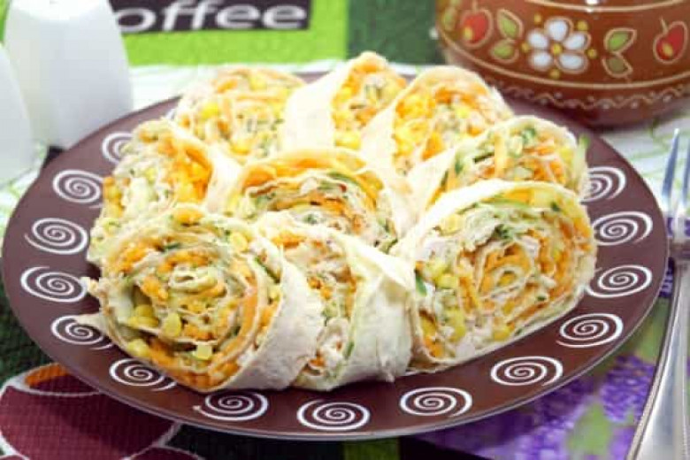 Հավի ֆիլեն եփել, բացած լավաշի վրա քսել պանիր, ապա լցնել կորեական գազար, վրան լցնել կտրատած հավի ֆիլե, քերիչով անցկացրած վարունգ և եգիպտացորեն:
