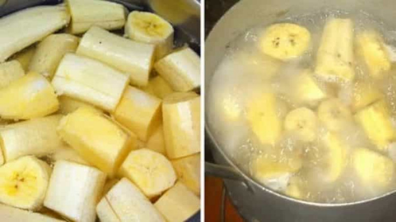 Դարչինի փայտիկները տեղավորեք ջրում և եռացրեք ջուրը, ավելացրեք բանանը, մի փոքր եփեք և սառեցրեք ստացվածը: