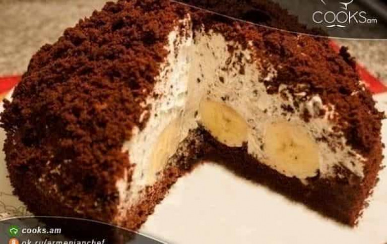 Այնուհետև խմորի մեջ այսպիսի փորվածք ենք անում, խտացրած կաթ քսում և շարում բանանները: