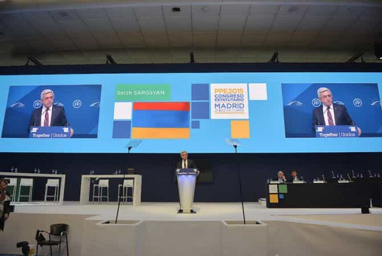 ՔԱՂԱՔԱԿԱՆԱշխատանքային այցով Իսպանիայի Թագավորությունում գտնվող ՀՀ Նախագահ Սերժ Սարգսյանը հոկտեմբերի 21-ին Մադրիդում մասնակցել է Եվրոպական ժողովրդական կուսակցության (ԵԺԿ) համագումարին: Այն վարել է ԵԺԿ Նախագահ Ժոզեֆ Դոլը: Համագումարին մասնակցել են Եվրոպական խորհրդի և Եվրոպական հանձնաժողովի նախագահներ Դոնալդ Տուսկն ու Ժան-Քլոդ Յունկերը, ԵՄ անդամ և Արևելյան գործընկեր ներ երկրներից ԵԺԿ-ին անդամակցող կուսակցությունները ներկայացնող պետությունների և կառավարությունների ղեկավարներ: