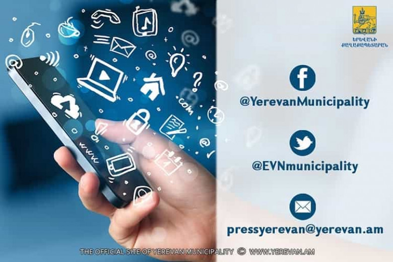 Հիշեցնում ենք, որ մեր համաքաղաքացիները կարող են էլեկտրոնային տարբերակով իրենց առաջարկները, դիտարկումներն ու խնդիրներն ուղղել Երևանի քաղաքապետարան սոցիալական ցանցերի էջերի միջոցով` ֆեյսբուքում /FB/Yerevanmunicipality/ և թվիթերում /@evnmunicipality/, ինչպես նաև [email protected] էլեկտրոնային հասցեով կամ օգտվել «Թեժ գիծ» ծառայությունից՝ 011-514-000 հեռախոսահամարով: