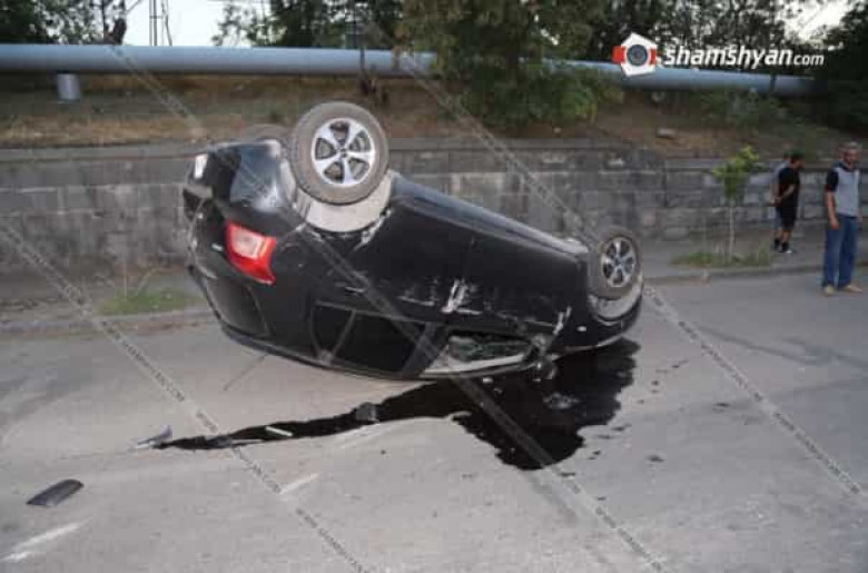 Երևանում տեղի ունեցած ավտովթարի ժամանակ մեքենաներից մեկը գլխիվայր շրջվել է. Shamshyan.com