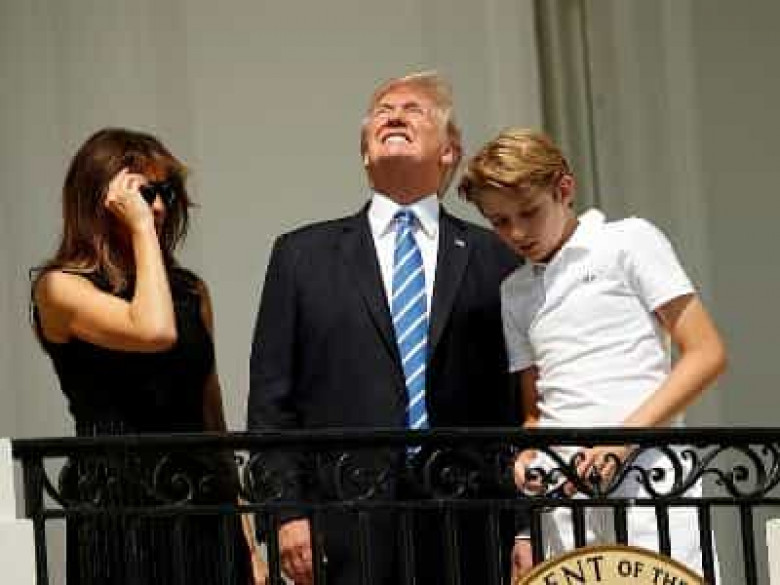 Թրամփն արեւի խավարման հետեւել է Սպիտակ տան պատշգամբից՝ ընտանիքի հետ միասին։ Երբ լրագրողները լուսանկարում էին, Թրամփը երկու ձեռքերը պարզել էր արեւի ուղղությամբ եւ հայացքը եւս հառել էր արեւին, սակայն հետո օգտվեց ակնոցից։ Լրագրողի հարցին, թե ինչպիսի՞ն է տեսքը, Թրամփը ժեստով պատասխանել է, որ գերազանց է։