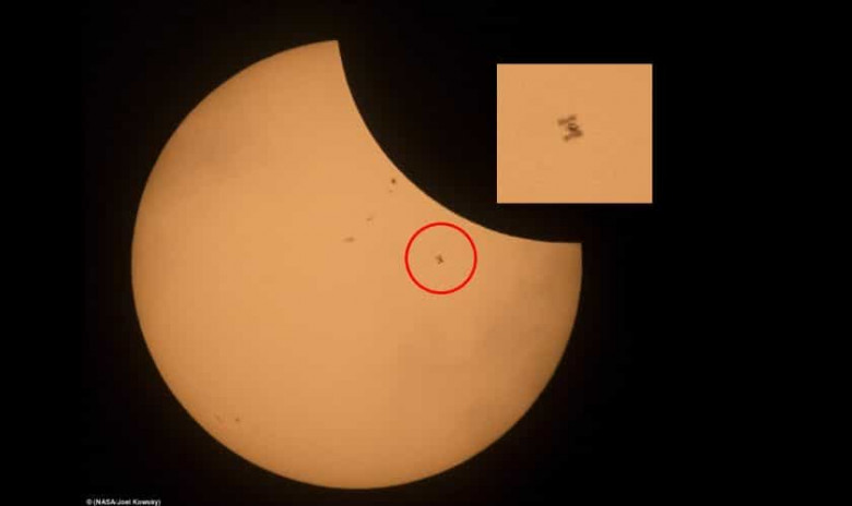 Խավարման լուսանկարներին նայելիս Արևի վրա սև անհասկանալի հետքեր են երևում։ Բանից անտեղյակ մարդիկ սկզբում կարծել են, որ դրանք ՉԹՕ-ներ են, որոնք խավարման ժամանակ անցել են Արեգակի առջևով։ Բայց պարզվում է՝ դա Երկրի արհեստական արբանյակն է՝ Միջազգային տիեզերական կայանը։