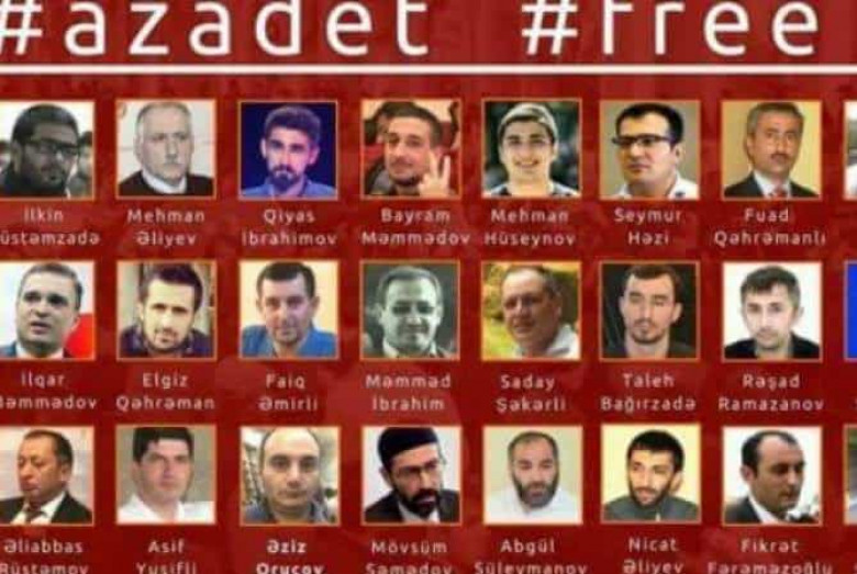 Ադրբեջանում քաղաքական շարժառիթներով ձերբակալված անձանցից 10-ը լրագրողներ են, 2-ը` բանաստեղծ և գրող, 1-ը` իրավապաշտպան, 11-ը` քաղաքական և հասարակական ակտիվիստներ, 19-ը քաղաքացիական գործիչներ, որոնք մասնակցել են բողոքի ակցիաներին, 97-ը` կրոնական ակտիվիստ, որոնցից 3-ը դատապարտված են ցմահ ազատազրկման: